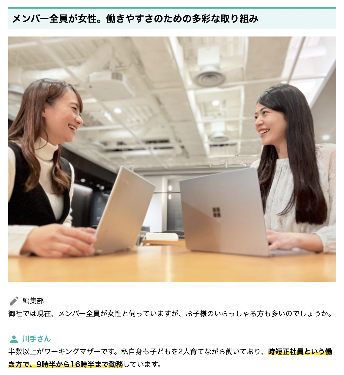 ・女性の働きやすさのための取り組み